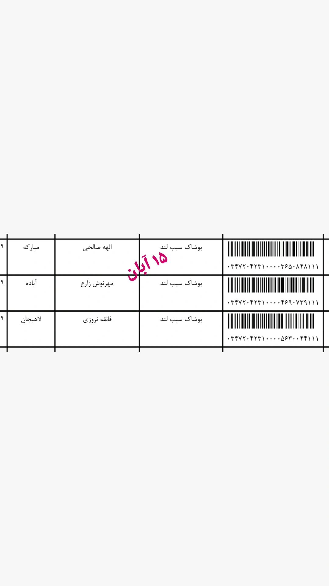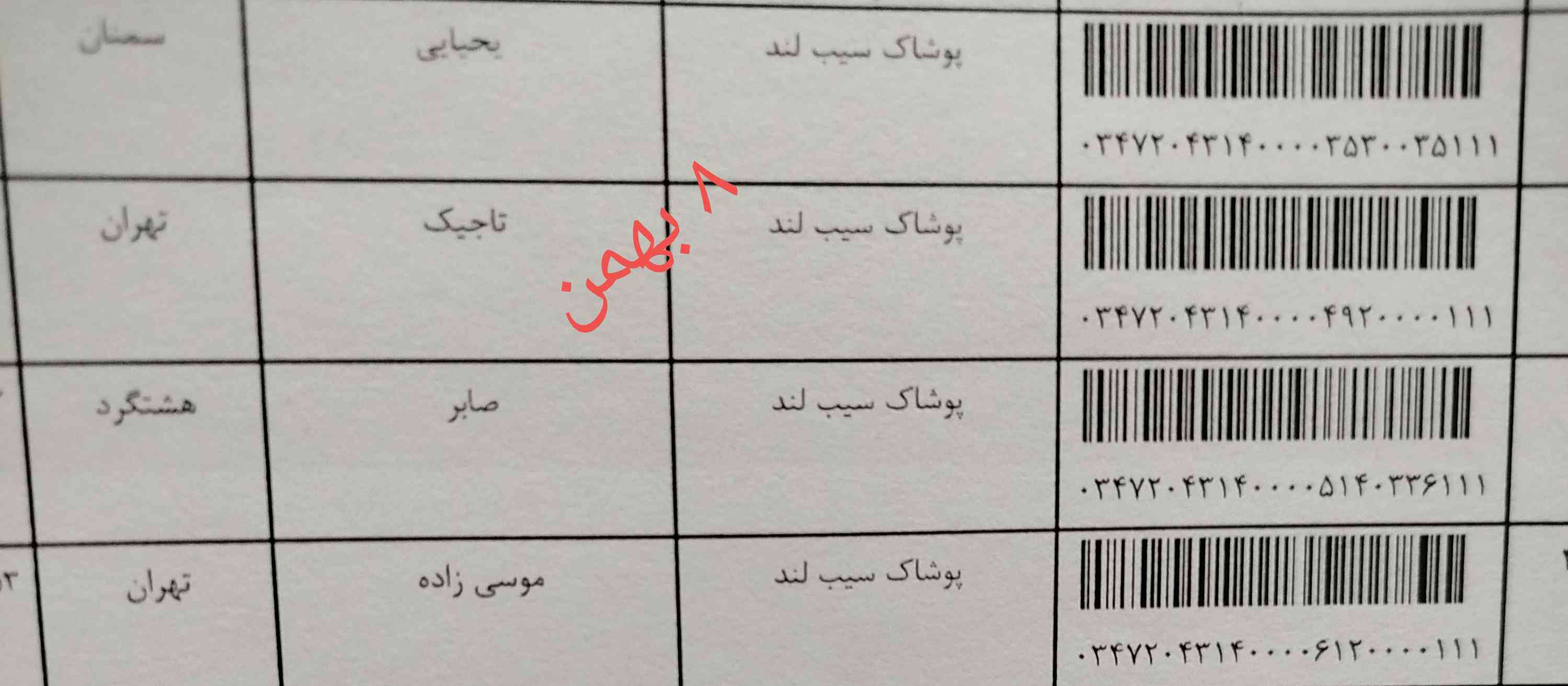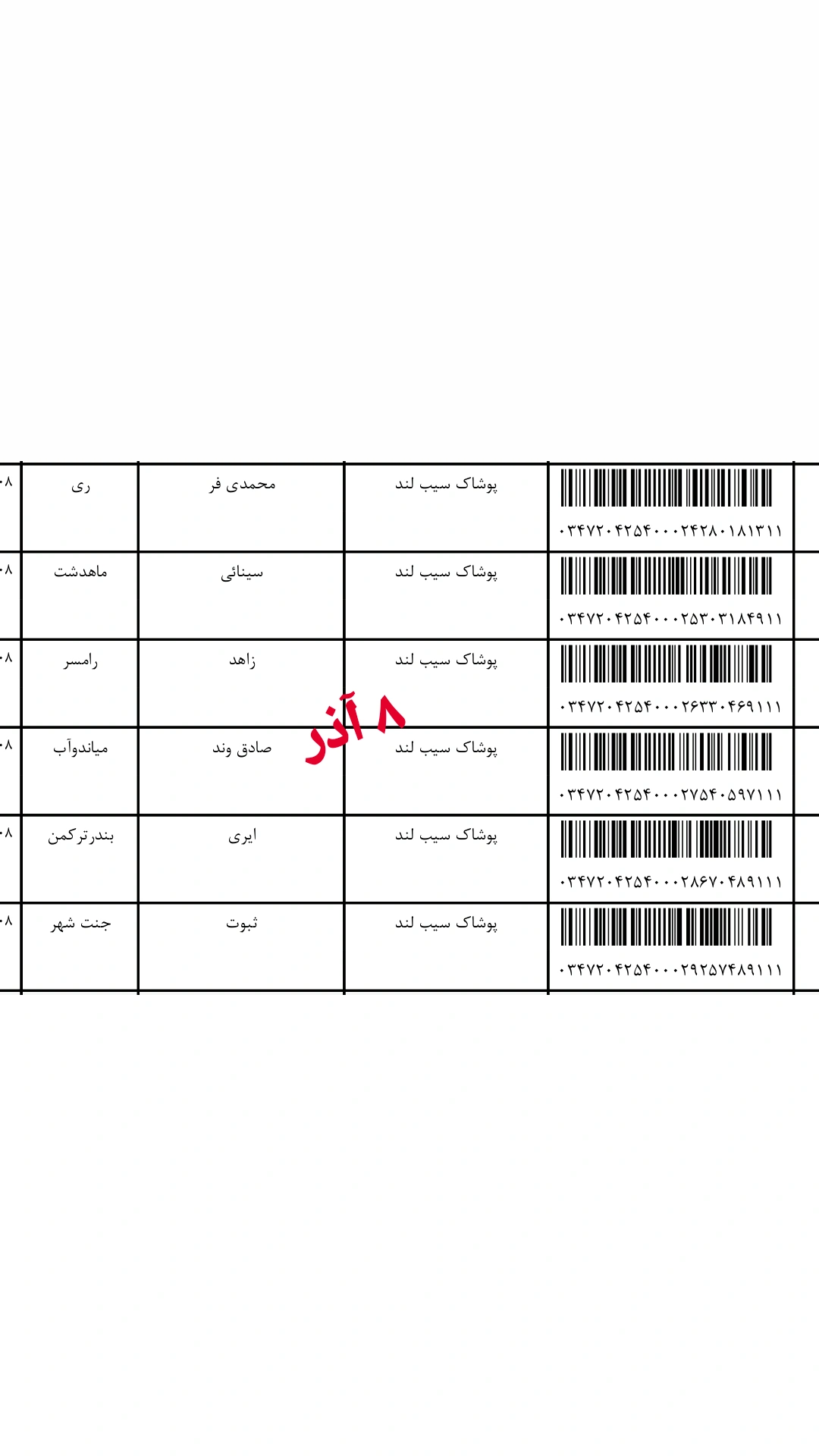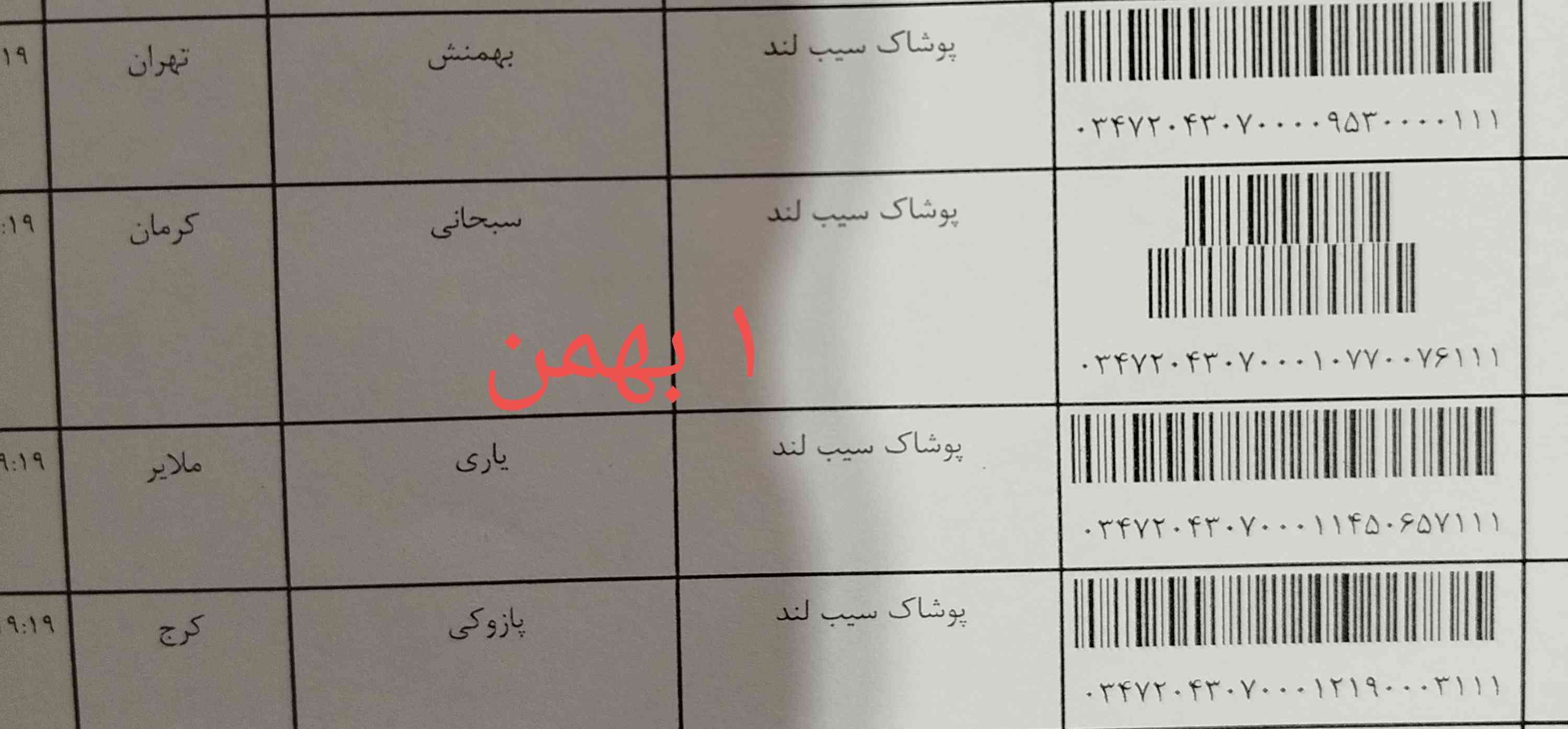 کدهای مرسوله پستی